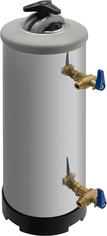 Содержит синтетическую ионную смолу, нейтрализующую ионы магния и кальция и заменяющую их на ионы натрия. Устанавливается между источником воды и оборудованием. Имеет герметичную крышку. Изготовлен из нержавеющей стали.
